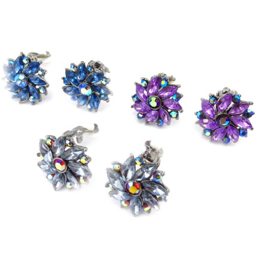 3 paires de clips "Sissi" bleu violet gris
