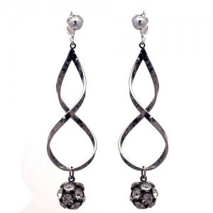 + Clip plaqué argent boucles d'oreilles Argent antique twisted metal goutte Pendentif boule strass en cristal Longueur 8 cm Boîte-cadeau