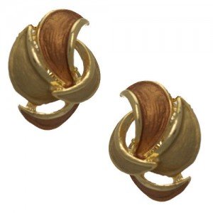 Plaqué or clip d'oreilles par Rodney « La flamme de scintillement » Bronze design émaillé avec bordure plaquée or 2 x 2.4 cms