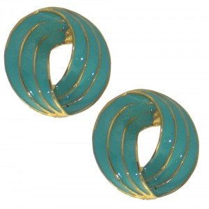 Boucles d'oreilles clip couleur or. Émail turquoise & gold line à nouent style. 2,2 x 2,2 cm (0,7 x 0,7 po). En boîte cadeau.