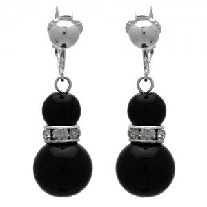 Florentin Silver Crystal Black Pearl clip Boucles d'oreilles